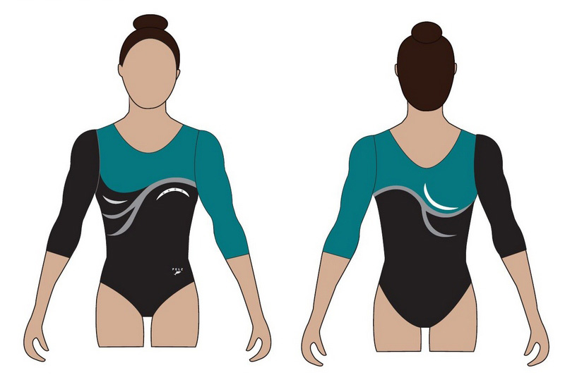 - Malla manga 3/4 con aplicacion en lycra mystique y cristales a dos colores.